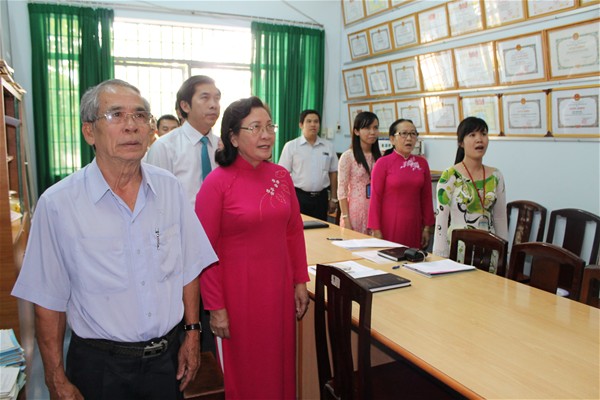 Hình 5: Đồng chí Nguyễn Trùng Phương - Bí thư Đảng ủy trường chụp ảnh lưu niệm cùng chi bộ.