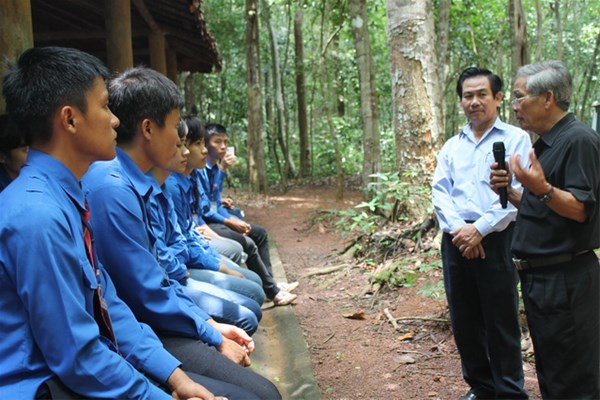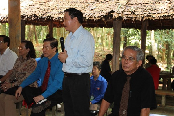 Hình 2: Đ/c Nguyễn Trùng Phương - Bí thư Đảng ủy nhà trường sinh hoạt truyền thống Chiến khu D anh hùng