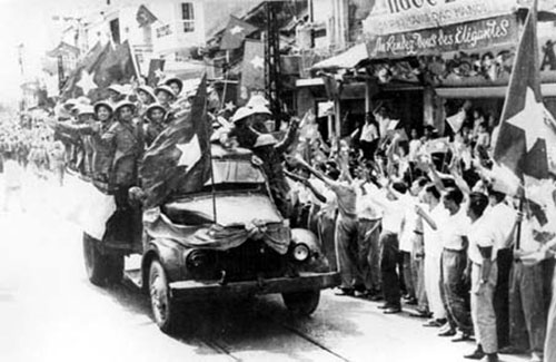 Hình 1: Đón chào quân giải phóng về Thủ đô