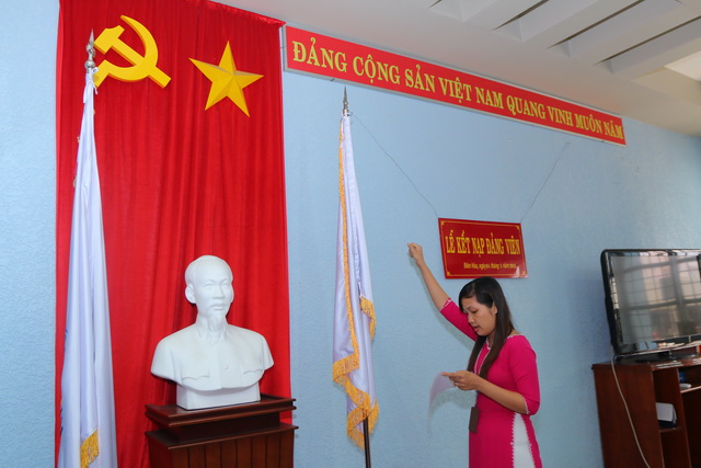 Trong không khí vui tươi, phấn khởi, với sự có mặt của toàn thể đảng viên trong chi bộ, buổi lễ diễn ra trong không khí trang nghiêm, ấm cúng. Ngay sau khi nhận quyết định, đảng viên mới Hồ Thị Kim Phượng tuyên thệ trung thành với lí tưởng và mục tiêu cách mạng của Đảng, thực hiện nghiêm túc các nhiệm vụ của người đảng viên, đóng góp tích cực vào việc xây dựng Đảng, xứng đáng là đảng viên Đảng Cộng sản Việt Nam.