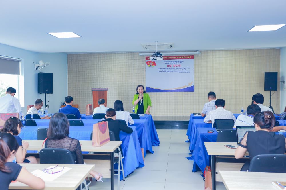 Đ/c Nguyễn Thị Thu Lan – Phó Bí thư Đảng ủy, Phó Hiệu trưởng phát biểu tại Hội nghị