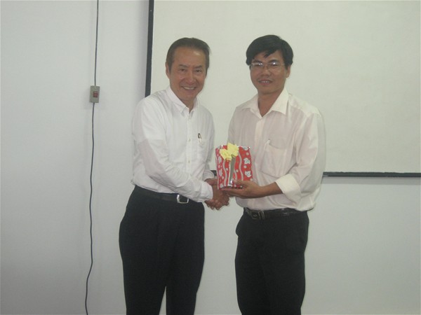 Ths.Trần Dũng gửi đến Phó tổng giám đốc công ty Vedan món quà lưu niệm và lời cám ơn chân thành
