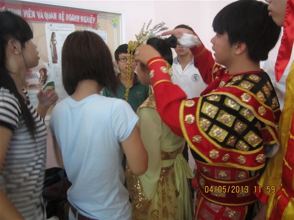 Sinh viên hóa trang chuẩn bị cho tiết mục biểu diễn