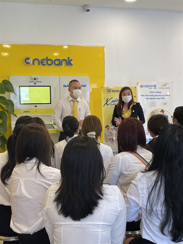 In the morning of March 25, 2022, the Finance- Accounting Faculty cooperated with Nam A Bank branch in Dong Nai to organize a field trip program to experience OneBank digital banking for students of class 19KT111.