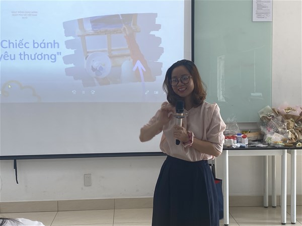 In the program, Ms. Nguyen Thi Thanh Huong and Ms. Nguyen Thuy Dung from Mây Coffee guided students to make confetti, guided bouquets into fresh and pretty bouquets, and made cookies. Besides, the two sisters also shared their experiences of creating cute and small gifts for their loved ones. After the program, the organizers gave sweet gifts of lovely biscuits to the attending students.