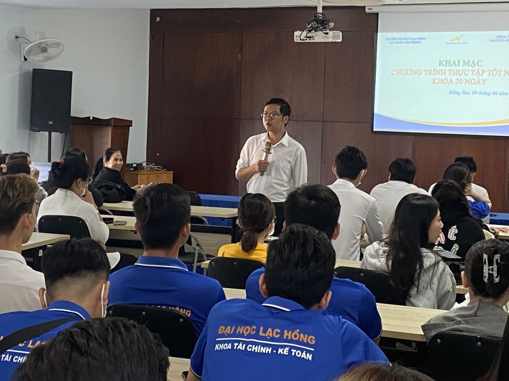 The opening event attracted the participation of students from the 20NH111 and 20KT111 classes, along with the presence of faculty members and administrators from the Faculty of Finance and Accounting. The ceremony commenced with welcoming remarks and the official opening by the faculty leadership, emphasizing the significance of the Internship Program in preparing students for their future careers.