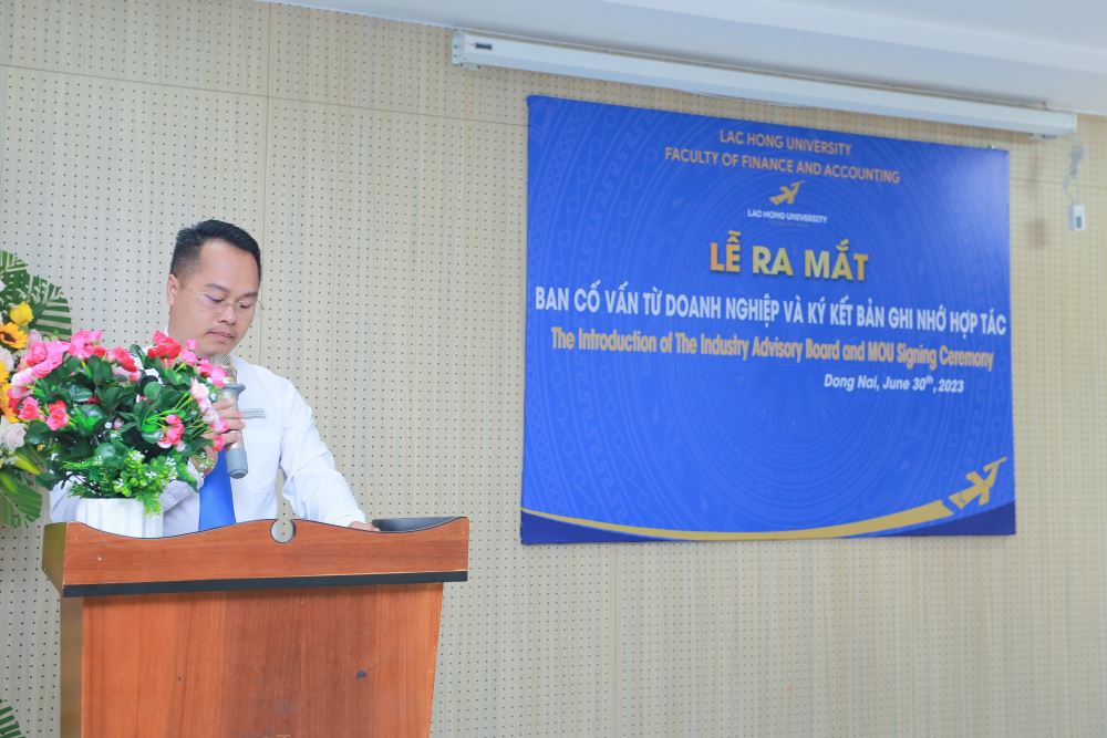 The launch event of the Business Advisory Board attracted the presence of significant guests. Associate Professor Dr. Nguyen Thanh Lam, Vice Rector of the university, had the honor to attend the event and delivered sincere congratulations to the Faculty of Finance and Accounting. Mr. Nguyen Van Hai, Deputy Head of the Faculty of Finance and Accounting, along with Mr. Huynh Thuc Hieu, Deputy Director of the “TVTS&QHCC” Center, were also present to show their support and share important insights regarding the development of the Department.