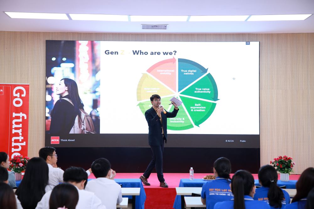 The content of the seminar was delivered by the speaker, Mr. Ha Nhat Tuan, an ACCA member and Head of Education Partnership at ACCA in the Southeast Asian continent. Mr. Tuan shared fascinating insights into the significance of Generation Z in the financial accounting industry and the vision for the future of this field in the context of international integration.