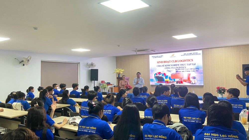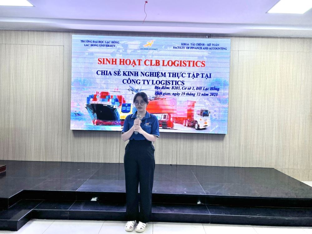 The Logistics Club hosts a regular activity with the theme "Sharing Internship Experiences at Logistics Companies." The session takes place on December 19, 2023, at 4:00 PM in room B203, drawing a large participation from students majoring in Logistics and Supply Chain Management.