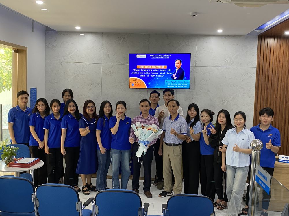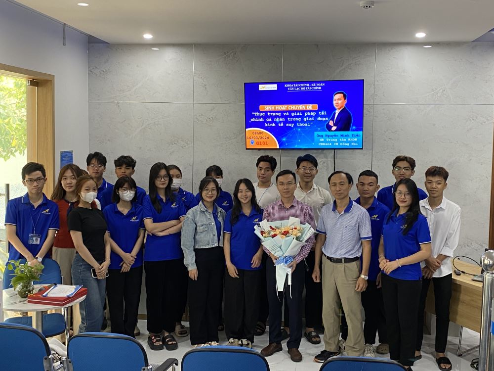 On the morning of March 16, 2024, the Faculty of Finance and Accounting organized a Finance Club activity, featuring Mr. Nguyen Minh Tien, Director of the Business Center of Construction Bank - Dong Nai Branch, Deputy Director of Finance Vision Co., Ltd. The session's theme was "Current Situation and Personal Financial Solutions in the Economic Recession Period."