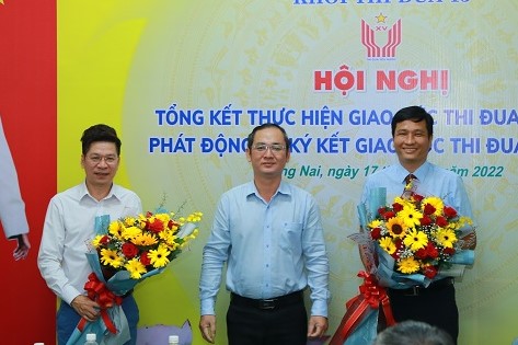 Leader of the Committee of Emulation and Commendation of Dong Nai province presented congratulatory flowers to the Head and Vice Head of the 15th Emulation Block in 2022