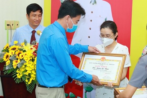 Ms. Lam Le Nga - Officer in charge of the emulation work of LHU was honoured to receive the reward for her excellent task completion
