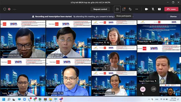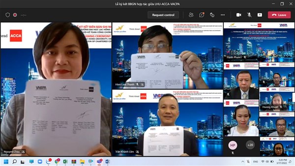At 3 p.m, yesterday took place an online MoU signing ceremony between LHU, VACPA (Vietnam Association of Certified Public Accountants) and ACCA (Association of Chartered Certified Accountants). The signing of MoUs aims to improve the professional qualifications of faculty members of Finance - Accounting, help students have the fastest access to international financial reports in Vietnam and create job opportunities for students when owning CertIFR certificate.