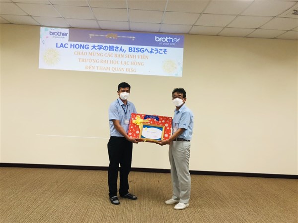 Representing LHU, Vice Rector Nguyen Vu Quynh presented souvenir gifts to the General Director of Brother Company