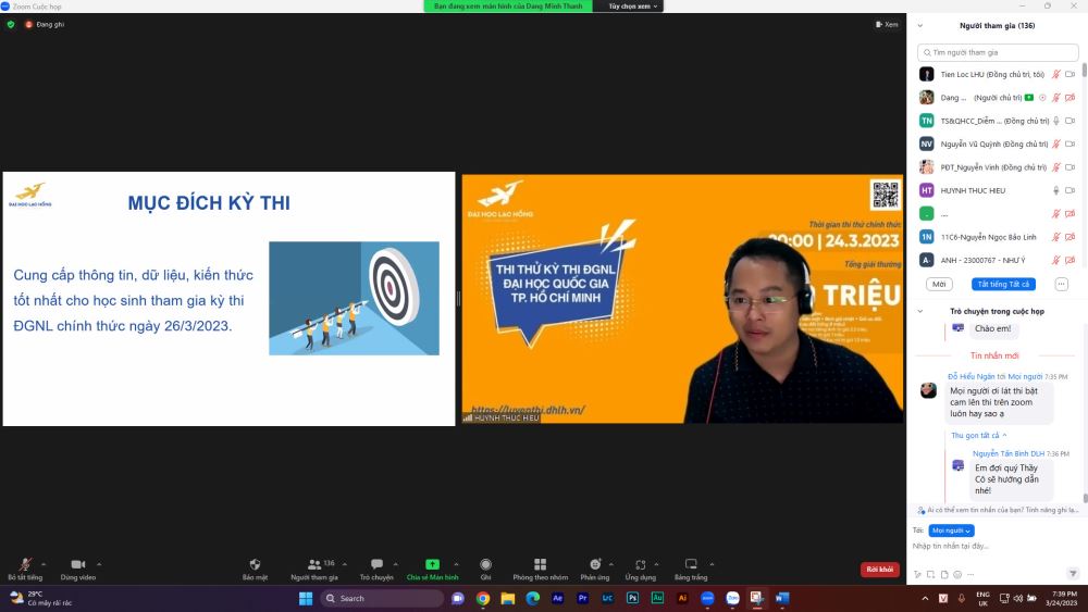 Last night, March 24, a trial competency assessment examination was co-organized by LHU and the Vietnam National University Ho Chi Minh City (VNUHCM) with the participation of nearly 300 candidates. The examination was held online at https://luyenthi.dhlh.vn/. Accordingly, candidate Bui Thanh Thien achieved the highest score with the result of 109/ 120 questions.