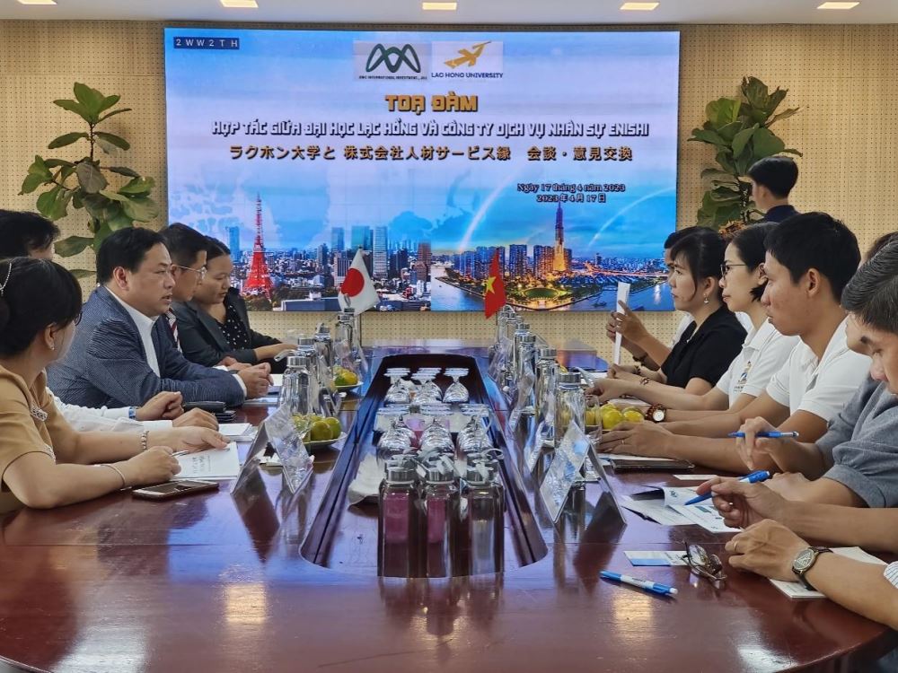 ENISHI Company specializes in providing personnel for Japanese businesses. It currently provides personnel for Japanese enterprises operating in IT industry. The Company looks forward to working with LHU to exchange cooperative programs and sign a MoU to send IT 4th-year students to work in Japan. Accordingly, IT students after graduation will be covered for one year of studying Japanese and have the opportunity to work at Japanese IT companies with a committed salary of 35 million VND/month.