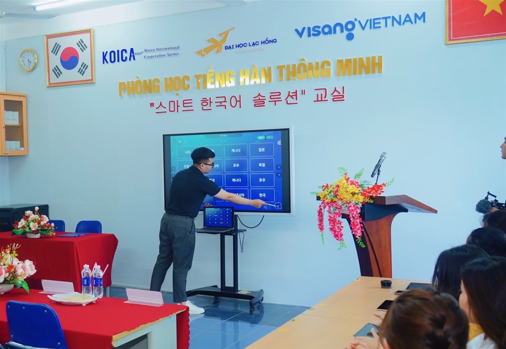- On the morning of June 15th, 2023, Lac Hong University (LHU), Department of Korean Studies in cooperation with Visang Vietnam Company Ltd., and the Korean International Cooperation Agency (KOICA) solemnly organized the opening of smart Korean language class - KlaSS, sponsored by the Visang Education Group.