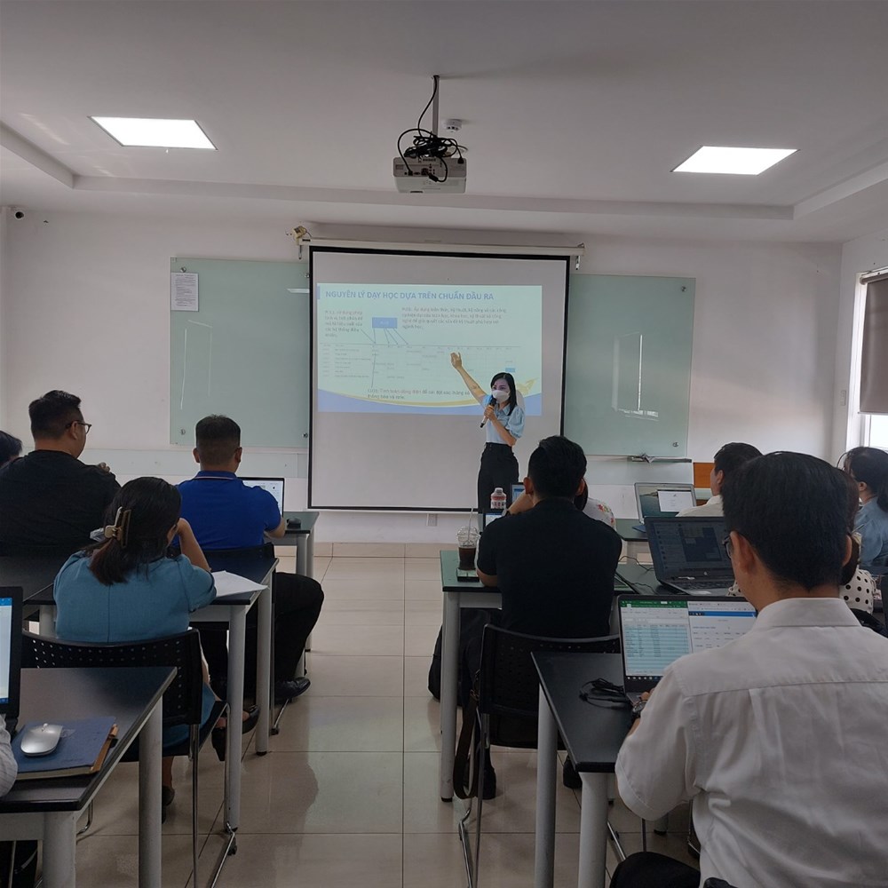 Dr. Le Phuong Truong - Head of Office of Testing and Quality Assurance presenting OBE-based teaching principles