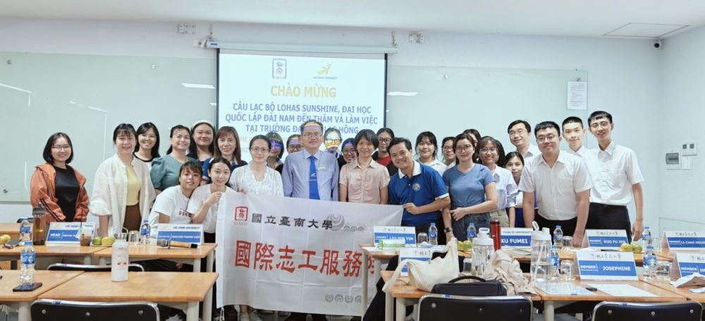 The delegation was welcomed by Assoc. Prof. Dr. Nguyen Thanh Lam - Vice Rector; Ms. Nguyen Thi Hoang Oanh - Head of Office of International Affairs; Ms. Nguyen Thi Nhu Thuong - Vice Dean of Faculty of Oriental Studies; Mr. Hoang Tien Dung - Deputy Head of Office of International Affairs; Mr. Phan The Anh - Head of Department of Chinese Language and students majoring in Chinese Language. From the LOHAS Sunshine Club, there were Ms. Liu Sin Yin - Head and members.
