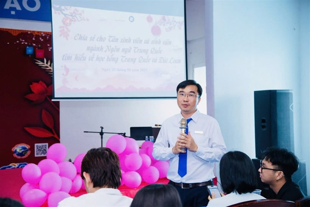 Mr. Phan The Anh, Program Head of the Chinese Language Department giving a welcome speech and providing career orientation for all new students