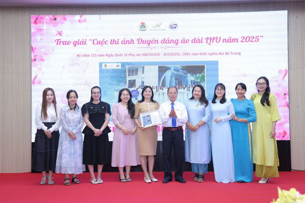 On this special occasion, the Organizing Committee presented flowers to outstanding individuals for their contributions during the 2020–2025 period; and awarded prizes for the "LHU Graceful Ao Dai Photo Contest 2025" and the "Tet Landscape Decoration Contest – At Ty 2025".