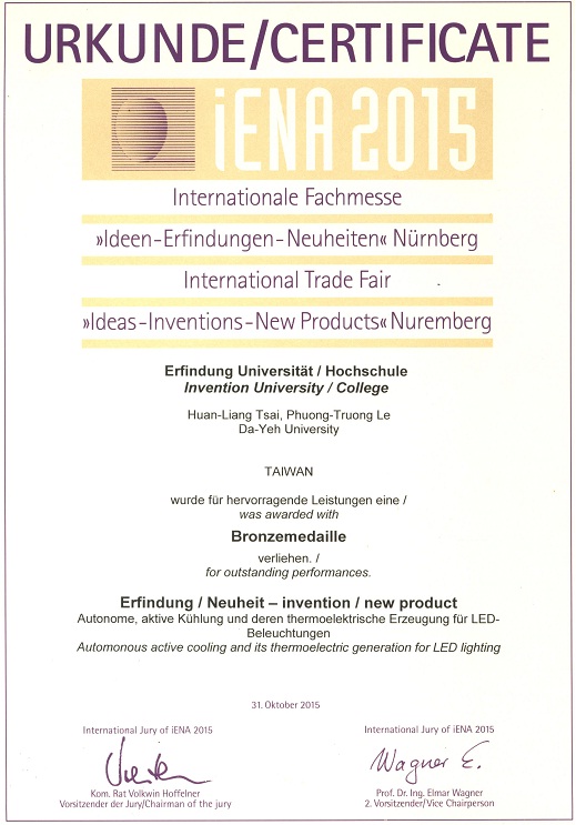 Late 2004, Truong started PhD program. This time, he sent his invention "Autonomous active cooling and its thermoelectric generation for LED lighting” to the 67 international trade fair for “Ideas – Inventions – New Products” held in Germany and won Bronze Prize.