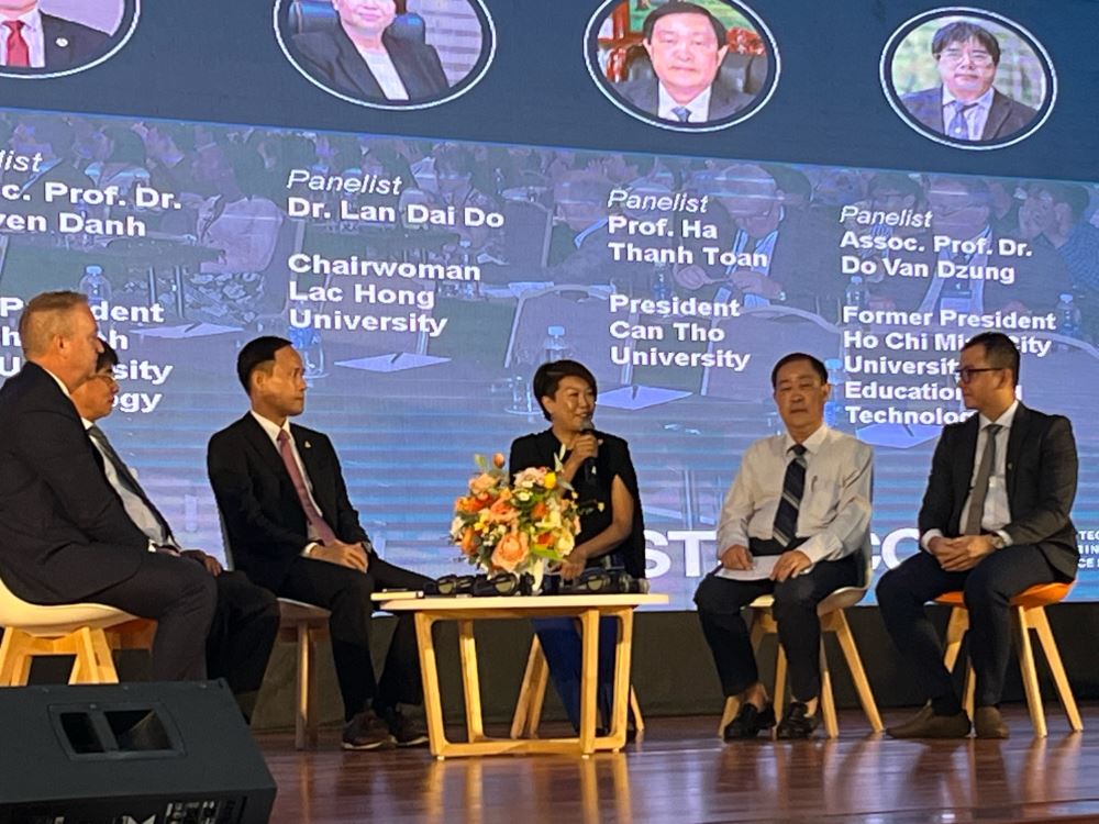 At the conference, there were also presentations and panel discussions including University Design Leadership Dialogue: MOET and University Rector’s Response to Digital Transformation Call to Action; Industry’s Voice: Development of Vietnam’s STEM Workforce of the Future; Creating Pathways to STEM Education through Digital and Online Lifelong Learning at Scale; Afternoon Keynote Presentation: University Autonomy: Building a “New Corporate University Model” through Digital Transformation; Building 21st Century Professional Skills: Experiential and Project-based Learning Outside the Traditional Classrooms; Reskilling the STEM Workforce through “just-in-time” Micro-credentials and Certification Programs.