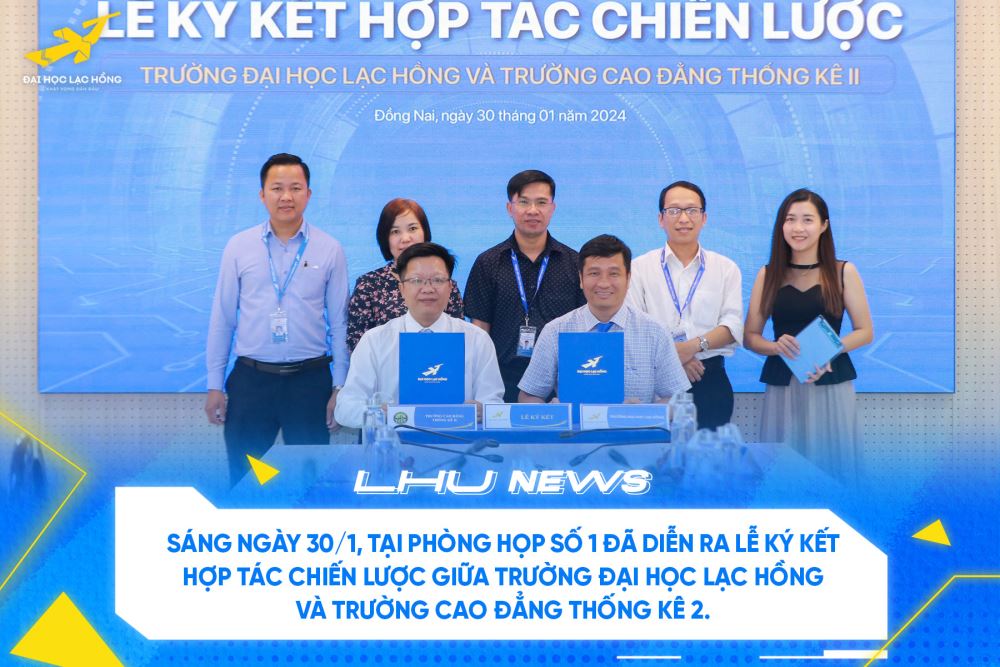 LHU and College of Statistics 2 signed a strategic cooperation agreement on January 30, 2024 to promote joint training programs and qualified human resources supply for localities and society, especially promoting digital transformation and technology transfer activities in management work. The event took place at the multi-functional hall of LHU.