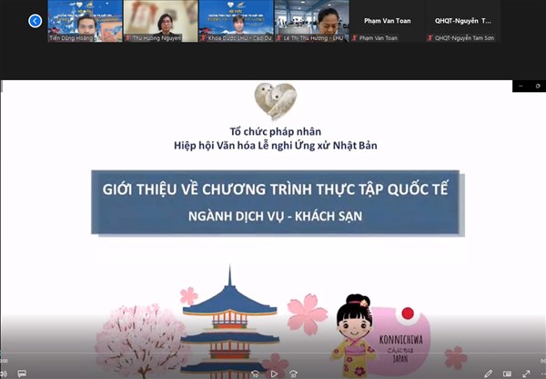 Chiều ngày 15 tháng 9 năm 2022, Phòng Quan hệ Quốc Tế Trường Đại học Lạc Hồng đã tổ chức buổi gặp mặt trực tuyến giữa Hiệp hội Văn hóa Lễ nghi Ứng xử Nhật Bản (WABUNKA) và Khoa tại Trường Đại học Lạc Hồng về việc tổ chức triển khai chương trình  thực tập.