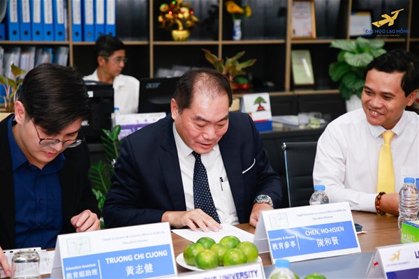 Chiều ngày 12 tháng 10, Phòng Quan hệ Quốc Tế - Trường Đại học Lạc Hồng đã tổ chức buổi Toạ đàm giữa Trường Đại học Lạc Hồng và Phòng Giáo dục thuộc Văn phòng Kinh tế - Văn hoá Đài Bắc tại TP. Hồ Chí Minh về việc tổ chức điểm thi đánh giá năng lực Hoa ngữ (TOCFL) tại Trường đại học Lạc Hồng.