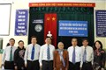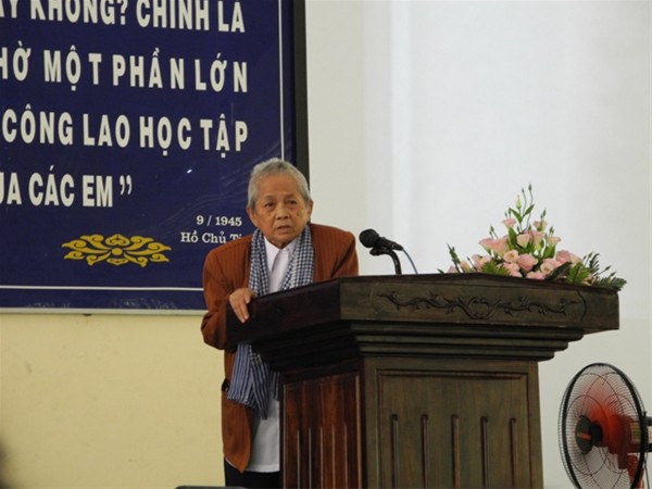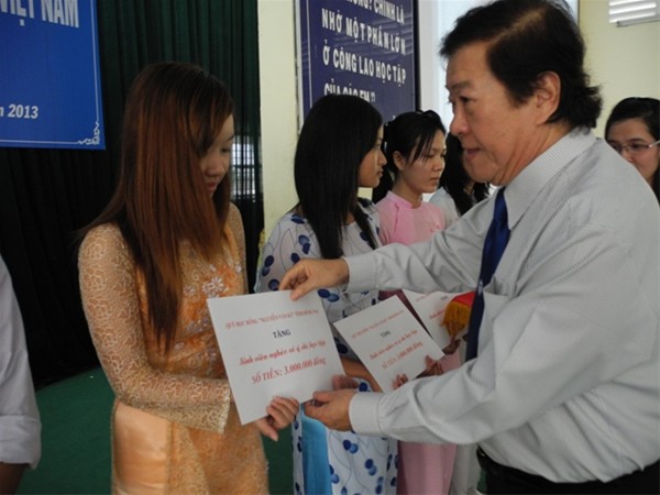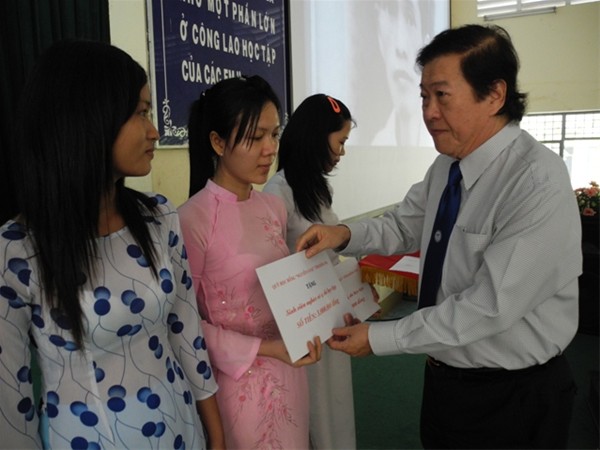 NGND. TS Đỗ Hữu Tài thay mặt Bà Lê Thị Trừ trao học bổng cho sinh viên