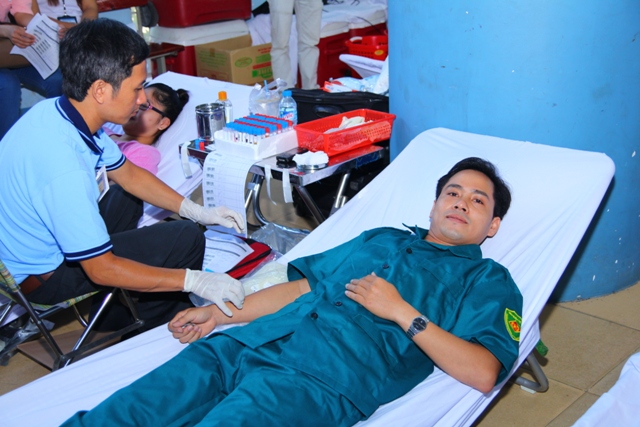 Hình 3: Ban CHQS trường tích cực tham gia hiến máu tình nguyện