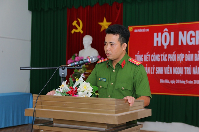 Tại Hội nghị, Lãnh đạo Phòng CTSV đã báo cáo tổng kết phối hợp đảm bảo ANTT giữa Trường Đại học Lạc Hồng và Công an phường Bửu Long năm học 2017-2018 theo Quy chế phối hợp số 202/QC-ĐHLH. CAP.BL ký năm 2017 và công tác phối hợp quản lý sinh viên ngoại trú năm học 2017-2018.
