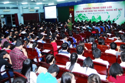 Một buổi tuyên truyền phòng chống ma túy tại trường Đại học Lạc Hồng.
