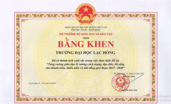 Đại học lạc hồng nhận bằng khen về đề án 1501 của Bộ Giáo dục và Đào tạo
