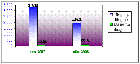Biểu đồ: Huy động vốn và dư nợ tín dụng BIDV – CN Nam Kỳ Khởi Nghĩa 2007 – 2008.
