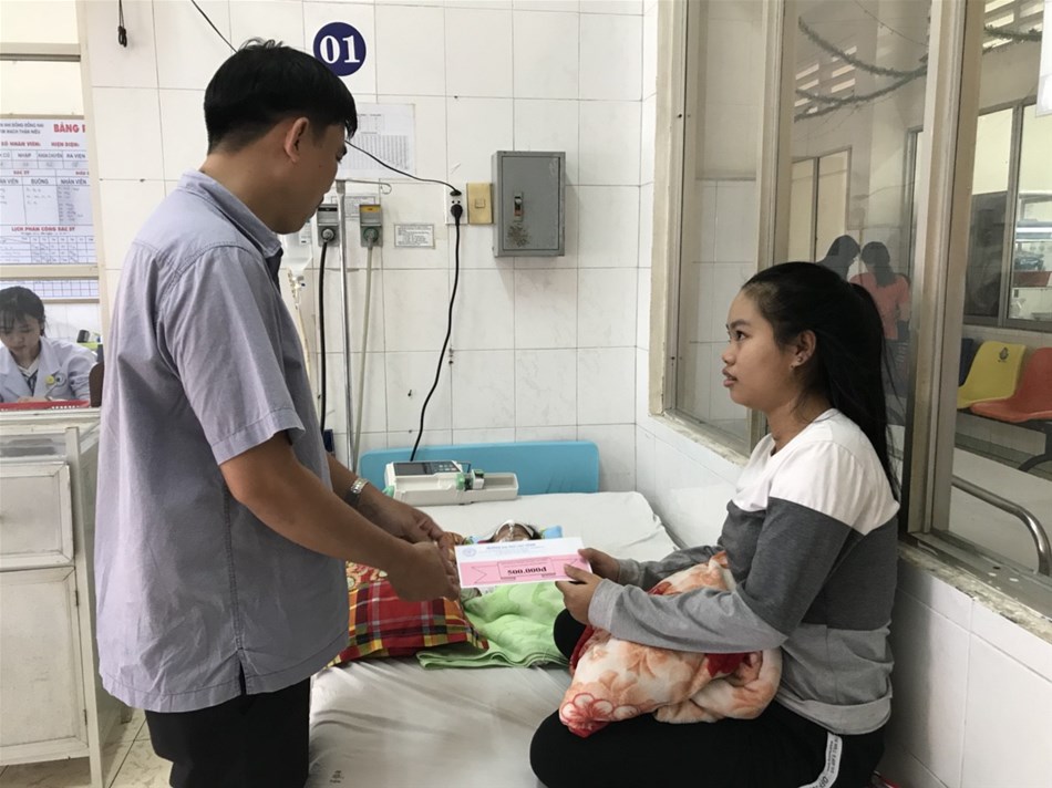 Nằm trong chuỗi hoạt động của chương trình Xuân yêu thương 2019 của trường Đại học Lạc Hồng, sau chuyến thăm các bệnh nhân ung bướu tại bệnh viện Đa khoa tỉnh Đồng Nai, chiều thứ Năm cùng ngày 31/01/2019 (nhằm ngày 26 Tết) Quỹ Nhân ái Lạc Hồng phối hợp Công  đoàn Cơ sở trường Đại học Lạc Hồng đã đến thăm và trao 41 phần quà Tết, mỗi phần tiền mặt 500.000 đ với tổng giá trị là 20.500.000 đ cho các bệnh nhi có hoàn cảnh khó khăn phải ở lại điều trị trong những ngày Tết tại Bệnh viện Nhi Đồng Nai.