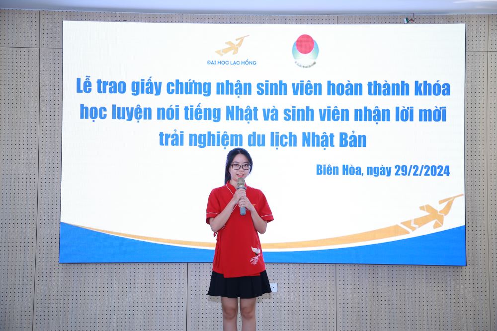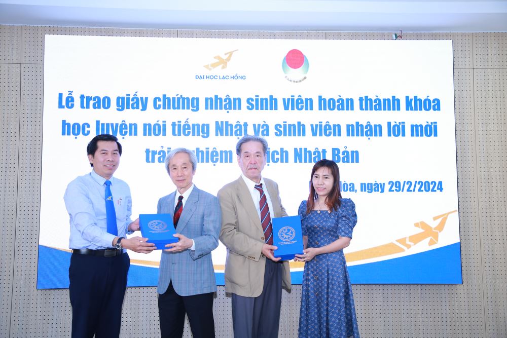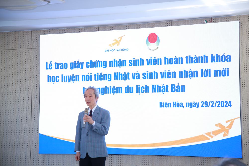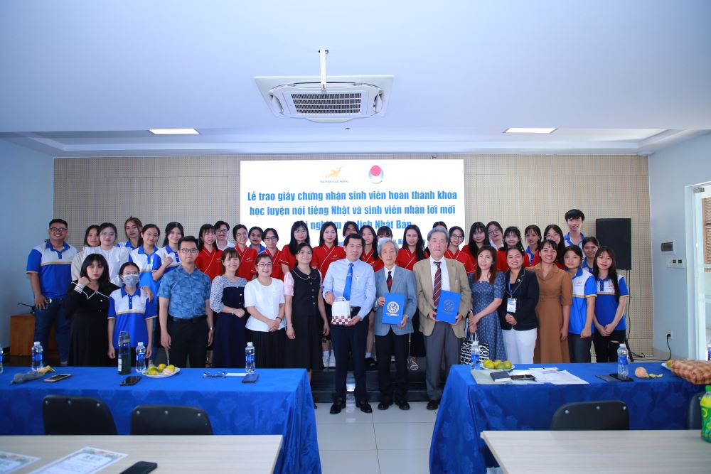 Sáng ngày 29/02/2024, Buổi Lễ trao giấy chứng nhận sinh viên hoàn thành khóa học luyện nói tiếng Nhật và sinh viên nhận lời mời trải nghiệm du lịch Nhật Bản đã diễn ra thành công tốt đẹp tại cơ sở 1, đại học Lạc Hồng. Chúc mừng tất cả các sinh viên đã xuất sắc hoàn thành chương trình đào tạo được tổ chức bởi công ty Konnichiwa Nihongo! Sự thành công của các bạn không chỉ là niềm tự hào cho bản thân mà còn là nguồn động viên quý báu cho sự phát triển của ngành Nhật Bản học, Khoa Đông Phương học, Đại học Lạc Hồng.
