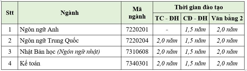 - Đại học - Đại học (Đại học văn bằng 2): Xét tuyển điểm trung bình tích lũy bằng đại học 1, không phân biệt hệ đào tạo.