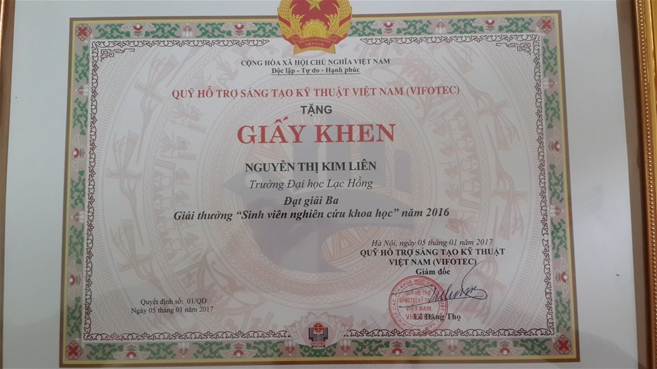 Giải thưởng sinh viên NCKH cấp Bộ năm 2016