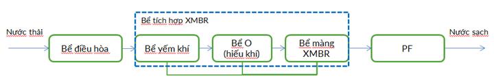 Sơ đồ công nghệ modul XMBR ứng dụng để XLNT dệt nhuộm
